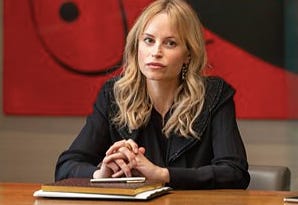 Celeste in TV show Industry is a mentor and seductress to banking intern Yasmin but her made-up accent is so distracting that I found myself laughing and yelling at the TV in these high drama seduction scenes. The actress who plays her, Katrine de Candole is German so why not have her a) just do a German accent b) find anyone else in London where it is filmed c) hire a Parisian and pay for their TGV??